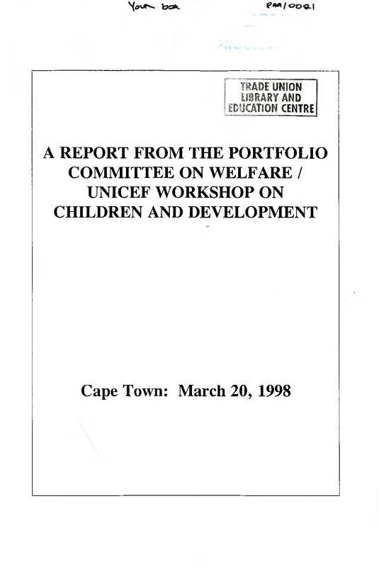 - A report from the portfolio committee on welfare / UNICEF workshop on children and development