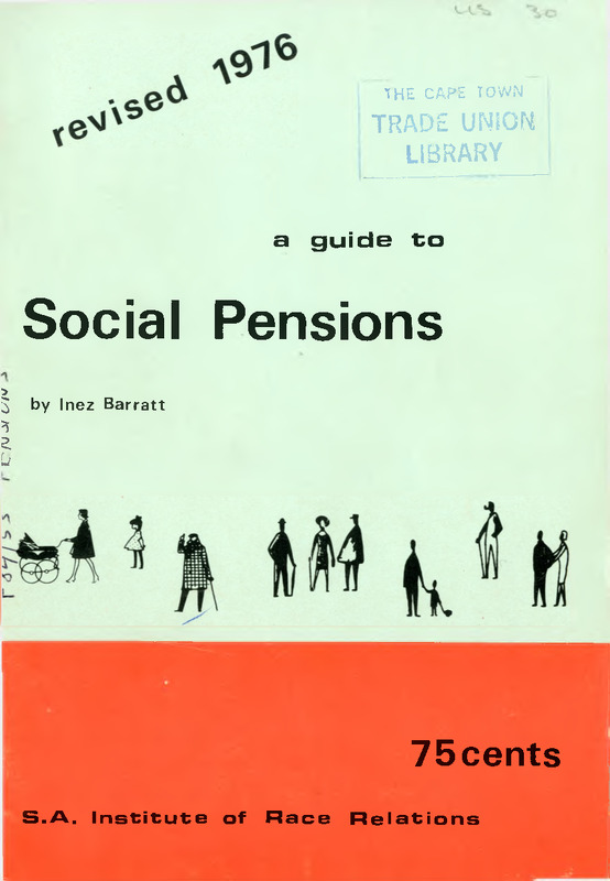 - In the Republic of South Africa (and in South West Africa) social pensions are non-contributory and are paid out of state revenue, the funds for the purpose being voted annually by Parliament. With minor exceptions, the pensions are granted subject to a means test: that is, income levels are laid down which fix the maximum allowable income including pension. If the total income exceeds this amount an applicant will not be awarded a pension. When these totals are being calculated a certain sum is permitted, called 'free income', which does not affect the amount of pension that may be granted. (This 'free income' might be made up of earnings, or interest from investments, or profits from agriculture, etc.)These different figures vary according to the kinds of pension and to the population group. They are revised from time to time. Changes are announced by the Minister of Finance in his budget speech to Parliament and usually become effective some months later when details have been worked out by the departments dealing with the respective population groups. Because the conditions under which pensions are granted are fairly frequently changed, and improved, an application which was not successful one year may well succeed a year or two later. Therefore any applicant whose circumstances may have changed, or who believes that new rules may help his case, is advised to apply again.,Revised Edition