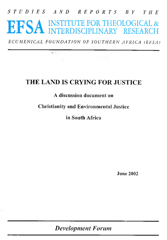 - The land is crying for justice: a discussion document on Christianity and environmental justice in South Africa