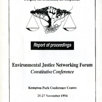 - Greening the RDP: people, environment, development: report of proceedings [of the] Environmental Justice Networking Forum Constitutive Conference, Kempton Park Conference Centre, 25-27 November 1994