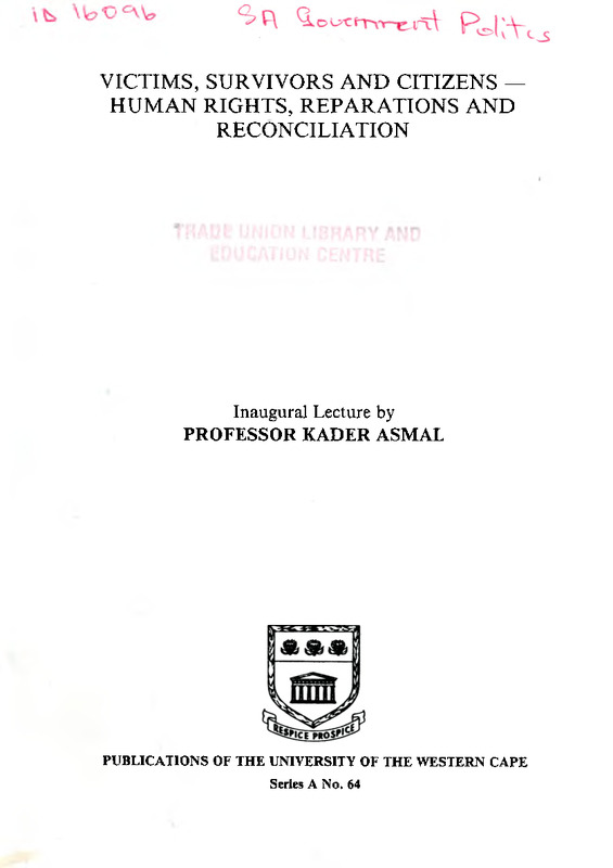 Victims, survivors and citizens: human rights, reparations and reconciliation: inaugural lecture