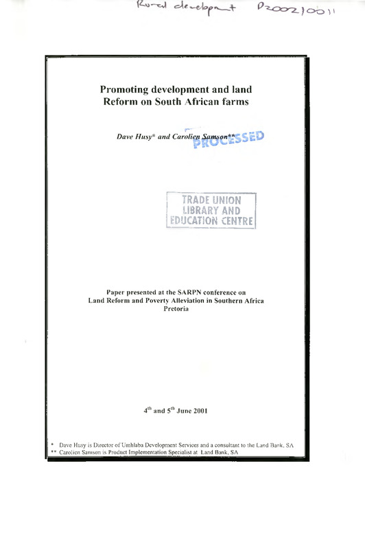 - A policy paper analyzing the integration of land reform with social development on commercial farms. It critiques the "brutal past" of farm labor relations and introduces the Land Bank’s "Social Discount Product"—a financial incentive for farmers to improve worker conditions. The authors argue that since redistribution only reaches a minority, broad-based "farm-based development" is essential for systemic poverty alleviation.