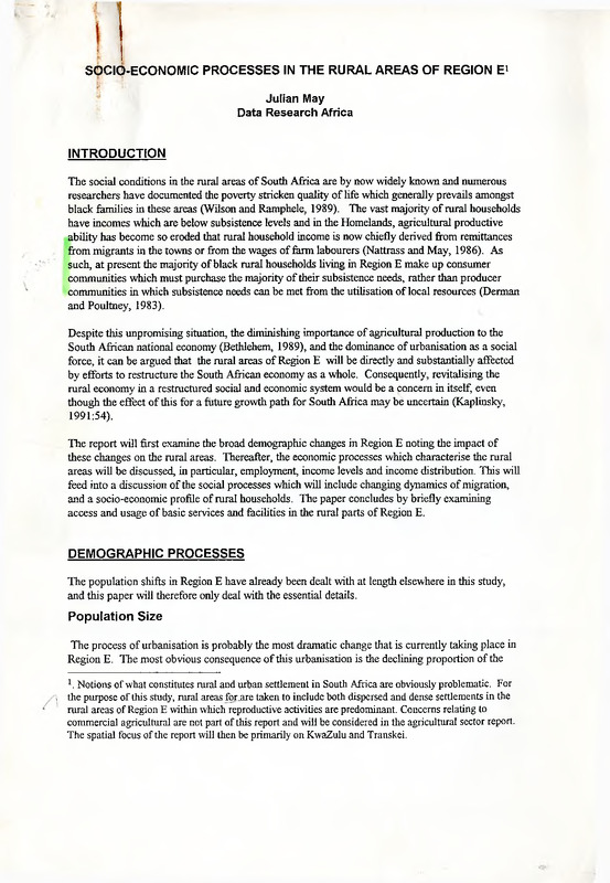 - Socio-economic processes in the rural areas of Region E