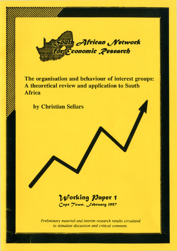 - The organisation and behaviour of interest groups: a theoretical review and application to South Africa