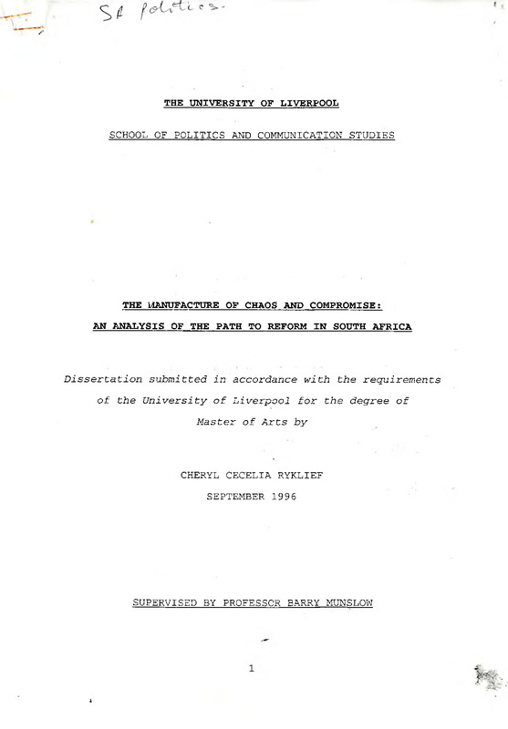 - The manufacture of chaos and compromise: an analysis of the path to reform in South Africa