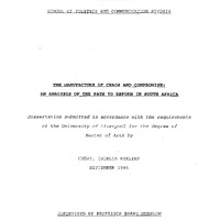 - This dissertation examines the factors leading to the opening of negotiations to majority rule in South Africa. It argues that changes to the socio-economic environment led to the growth of the strategic relevance of the black working class, and also created certain points of collision between the black working class and the policies of the state. These sectoral collisions engendered both the partial reforms of the Botha era as well as the rejection of these reforms by the black majority. The developments that emerged from the ensuing process of reform, resistance and repression in the 1980s weakened both the state and the black opposition sufficiently to allow for the emergence of a consensual solution to the political stalemate.,Dissertation submitted in accordance with the requirements of the University of Liverpool for the degree of Master of Arts