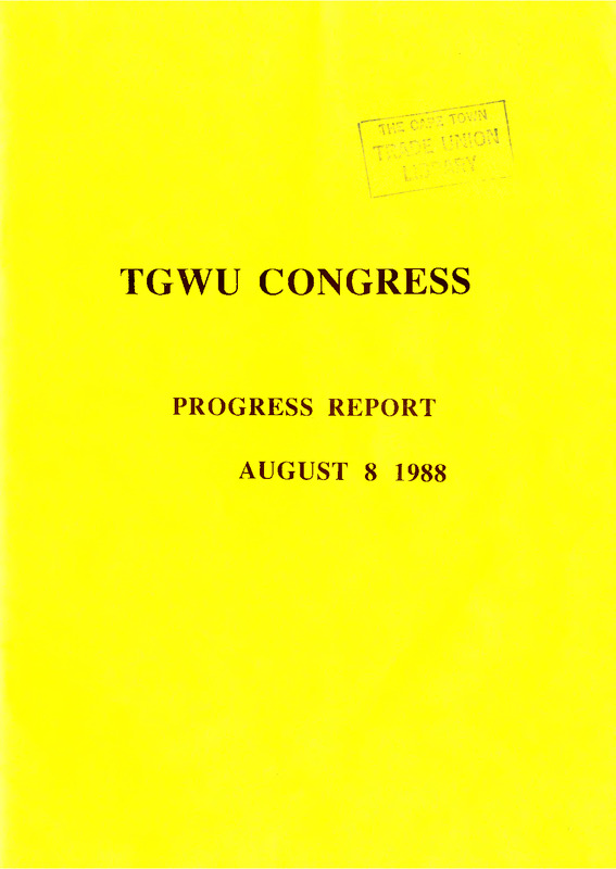 - Transport and General Workers Union: Progress report on developments in TGWU during the period August 1987-July 1988