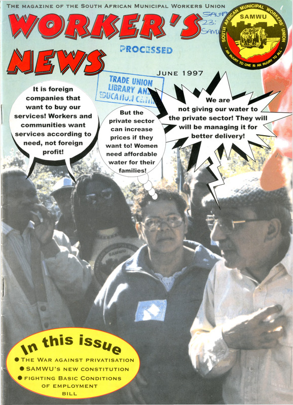 The inaugural issue of the SAMWU Magazine serves as a foundational document for the South African Municipal Workers' Union, following its formation in 1987. Published during a critical period of transition in South African labour history, the issue outlines the union’s militant stance against the privatisation of local government services and highlights its leadership in the National Living Wage Campaign.