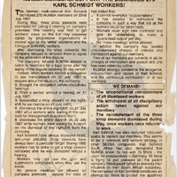 - A call for solidarity following the dismissal of 270 NUMSA members by German multi-national Karl Schmidt on July 22, 1987. The conflict began with the dismissal of three shop stewards for organising a meeting regarding the May 5-6 stayaway (protesting "white" elections and the SARHWU killings). Management's refusal to arbitrate or allow a legal strike ballot led to mass dismissals of both night and day shifts while workers waited for management engagement.
