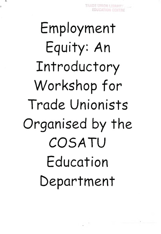 - Employment Equity: an introductory workshop for trade unionists organised by the COSATU Education Department