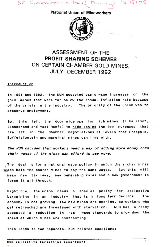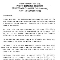 Assessment of the profit sharing schemes on certain Chamber Gold Mines, July-December 1992