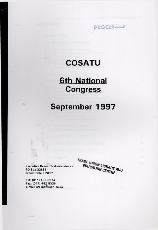 - Cosatu's Sixth National Congress held over four days from 1 6-1 9 September was on the surface a fairly well run operation in which Cosatu, with the involvement of the SACP, effectively drew the battle-lines with respect to its ANC alliance partner on the question of its Growth, Employment and Redistribution macro-economic policy - GEAR. The Congress also laid the groundwork in preparation for the ANC's upcoming December National Conference where socialists are expected to make a determined push in getting elected onto the ANC's National Executive Committee (NEC), as well as influence ANC strategy and tactics to counter the emergent Africanist grouping which threatens to dilute the ANC's working class bias. The Congress further saw Cosatu clearly attempt to reassert its socialist vision. Using its recently released September Commission Report as a basis for policy formulation, a decision was made that Cosatu should play an active part in the economy and the development of the country. This included Cosatu's involvement in areas such as industrial development strategy, changing investment patterns and new forms of management. The Congress, however, also witnessed the humiliating defeat of carefully crafted motions and much unfinished business concerning the finalisation of critical resolutions and debates raised from the floor. Cosatu's senior leaders including John Gomomo (President), Sam Shilowa (General Secretary) and Zwelinzima Vavi (Deputy General Secretary), were often caught wrong-footed by debates from the floor which countermanded positions thought out prior to the conference by the executive committee. The most embarrassing moment came for Cosatu's leadership when a recommendation to implement a gender quota was rejected by most affiliates, including women delegates themselves. Prior to the Congress, it had been recommended by the September Commission that the federation and its affiliates should adopt a quota system for women. A target had been set of 50 percent representation in all structures by the year 2 000. Mindful of the implications this held for the national affirmative action debate, Cosatu's leadership tried to side- track the issue for a later resolution but were rebuffed by the delegates. Similarly, the debate around globalisation took up a considerable amount of time, which led to Gomomo attempting to bring the debate to a speedy resolution. That in turn resulted in his censure from the floor. Earlier, Shilowa had embarrassed himself when he inadvertently seemed to state that he supported globalisation only to be reminded by the delegates that that was not Cosatu's position