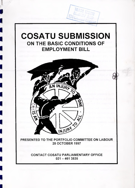 - COSATU Submission on the Basic Conditions of Employment Bill