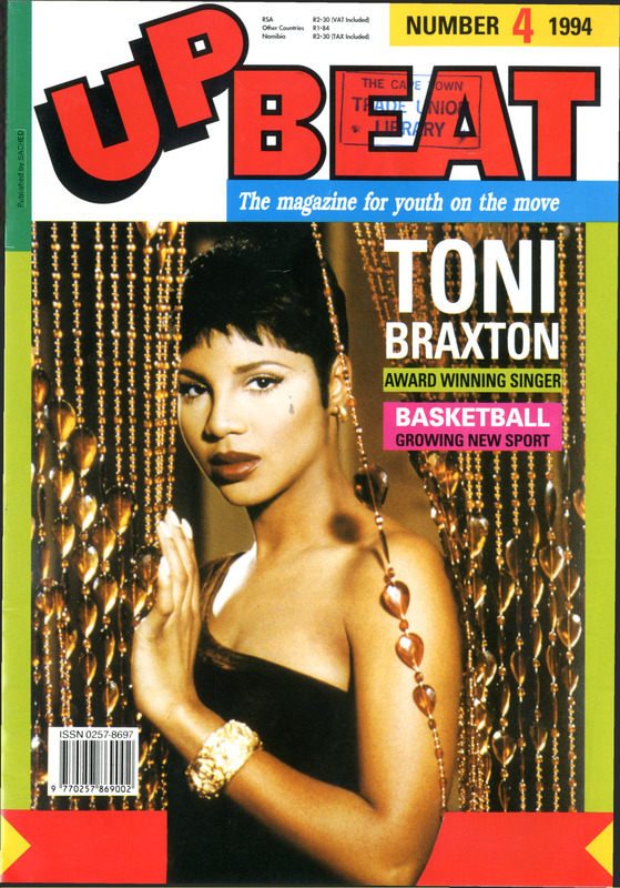 - Well, here we are, a month after the elections. Let us pray that everyone in our country will be able to put their differences behind them and work together to build a better South Africa. In this issue of Upbeat we speak to young people about the violence in Bophuthatswana before the elections. But there are also lots of fun stories for you to read. Meet Toni Braxton and find out more a sport that is taking over in South Africa - basketball. Finally there is a story about smoking and what it does to your body on page 12. If you are a beginner smoker, do the quiz at the end of the story and see if you really want to smoke.