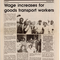 - A 4-page edition reporting on the Goods Transport Industrial Council wage increases and the landmark inclusion of maternity leave for female truckers. It serves as a memorial issue for Zoleka Mjoli, Godfrey Mncwango, and Elizabeth Sibema, who died in a car crash. Key articles include the opening of the Workers’ Clinic in Cape Town, the Cargo Carriers strike reinstatement, and the retrenchment of Union Treasurer Justice Xaba by KZT.