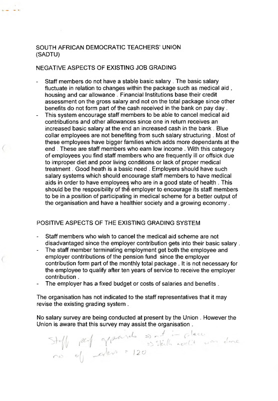 - SADTU existing job grading