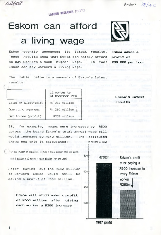 - ESKOM can afford a living wage