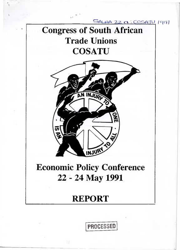 - From 22 to 24 May 1990, 271 delegates from all COSATU affiliates gathered at the SAFARI HOTEL in Johannesburg at COSATU's first ECONOMIC POLICY CONFERENCE. Many workshops and discussions had taken place already within COSATU and affiliates in preparation for this Conference. The delegates to this Conference had the responsibility to develop a foundation from which the forthcoming COSATU Congress can adopt a comprehensive package of policies for economic reconstruction.