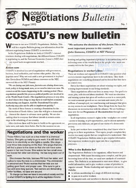 - Negotiations Bulletin - COSATU's new bulletin