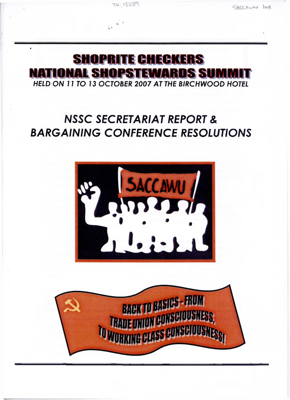- Comrades National Office Bearers of SACCAWU, leadership of the Company Council, distinguished guests & delegates to this Summit, we extend to you revolutionary greetings from the National Office Bearers of Shoprite Checkers, and the masses of Shoprite Checkers workers who are SACCAWU members. This gathering takes place exactly a year after our national strike. It also takes place after lot of significant gatherings of all the Alliance Partners i.e. COSATU Central Committee, SACP National Conference, ANC National Policy Conference, and on fhe home front, the SACCAWU National Bargaining Conference. It is the important that the deliberations in this gathering should look at all decisions taken during this significant event, the Bargaining Conference, and put them into practicality. This Secretariat Report will cover the activities since the National Shopstewards Council of June 2006 in Durban.