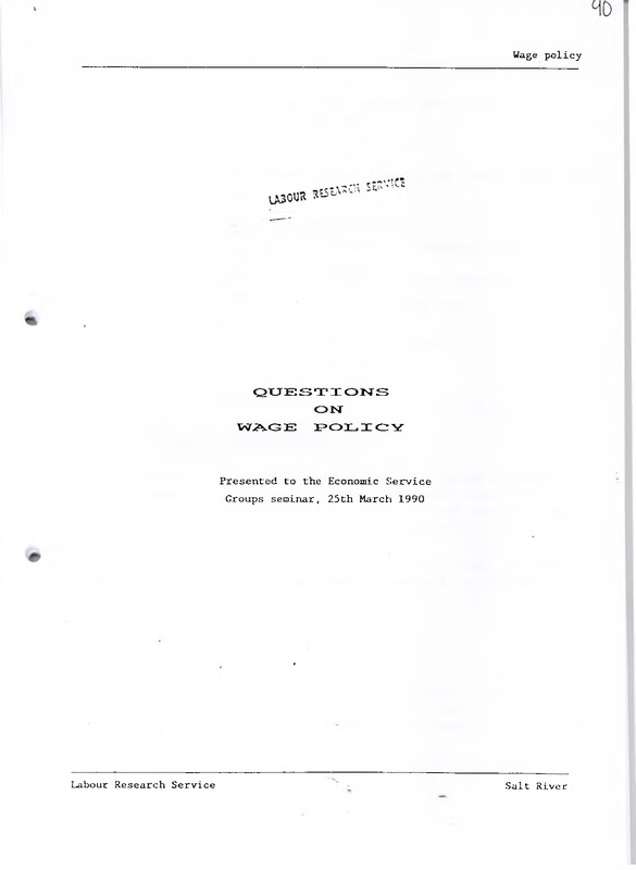 - The item is held at the Cory Library for Humanities Research, Rhodes University, on behalf of the Labour Research Service