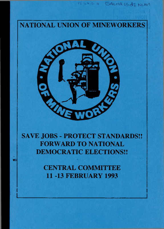 - It is one year since our last Central Committee.During this period much has happened on the international and domestic front. Yugoslavia remains at war, the United States of America has the first democratic President since Carter and millions of people are starving. It is not only in Somalia that people are starving.Right here at home over two million people are fed by poverty relief programmes. Although we thought that democracy was at hand, it has still eluded us in 1992. The Apartheid government still remains firmly entrenched although the negotiations with the African National Congress show some glimmer that the multilateral negotiations will resume shortly, the establishmant of a transitional government and the holding of the first non-racial national democratic elections by the end of 1993 or early 1994. With the violence still not under control we continue to see our people under siege, families broken up and property destroyed. For peace there must be democracy. Apartheid has left incalculable damage and a legacy that will have to be addressed. As the National Union of Mineworkers we have made and will have to continue to make many sacrifices. 1993 heralds important challenges for our union and the democratic movement as a whole. Central Committee will have to deliberate on these matters and decide the way forward for the coming months.