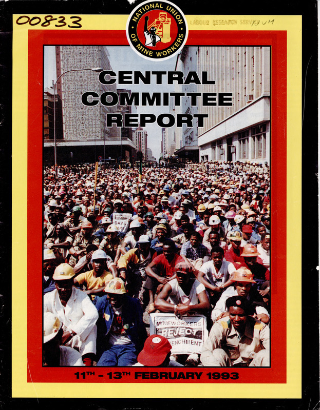 - The National Union of Mineworkers (NUM) held a successful 1993 Central Committee (CC) meeting from 11-13 February at CSIR Centre in Pretoria. The CC attended by 300 delegates from the 16 regions of the union representing 280 000 members deliberated key issues affecting workers in mining and energy sectors. With the opening session, the 11th, being the third anniversary of the release of NUM honorary president, Nelson Mandela, the stage was set for tough decisions to be taken on the current political developments in South Africa. NUM president, James Motlatsi outlined general guidelines on major issues affecting workers in his keynote address. Major issues for discussion were: Retrenchments, NUM's role in the forthcoming national democratic elections, Wages and conditions of employment demands for 1993, Assessment of the state of the NUM. It took delegates three days of serious discussions to come out with decisions which will guide the union in this dynamic period in the history of our country. NUM was honoured to have ANC secretary general, Cyril Ramaphosa as a guest speaker on the current political developments. COSATU general secretary, Jay Naidoo also gave us the honour by giving an invaluable input on the challenges faced by the labour movement today. The CC culminated with a mass rally in Klerksdorp on the 14th February for report back. The CC was held under the theme: Save jobs and protect standards. Forward to democratic elections. Details of CC decisions are given in this report. Please note that this report is not the official record of the CC proceedings but is a summary guide prepared by the NUM media department for the information of members. We suggest you keep it for future reference.