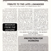 - To my knowledge the author of this adage was Brother Davadoss. Better known to many, far and wide, as “DAVVYâ€. Lesley Davadoss was one of nine children of a working class family. Grew up and spent his formative years in Bokmakierie, Athlone. Devout in his Catholic upbringing, later to be ordained as a Deacon at St. Mary of the Angels. Lesley was a very sincere person who concerned himself with the needs of the Community, which naturally resulted in his involvement at the Company where he worked with the problems of his workmates. Along with other like thinking persons, he formed the E.I.W.U. in the Cape, holding meetings at his home in Kayter Road Crawford. The Branch in Durban, along with the Cape Town Branch formed E.I.W.U.S.A.