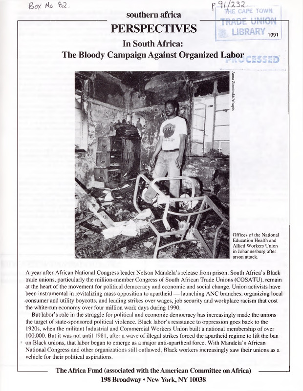 - Southern Africa perspective - In South Africa: The Bloody Campaign Against Organized Labor