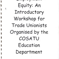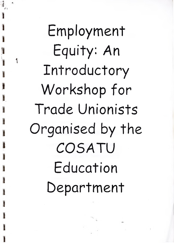- Employment equity - An 1 Introductory Workshop for Trade Unionists Organised by the COSATU Education Department