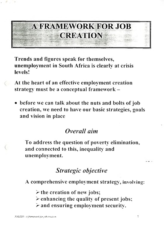 - A framework for job creation