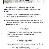 - Trends and figures speak for themselves, unemployment in South Africa is clearly at crisis levels! At the heart of an effective employment creation strategy must be a conceptual framework - • before we can talk about the nuts and bolts of job creation, we need to have our basic strategies, goals and vision in place