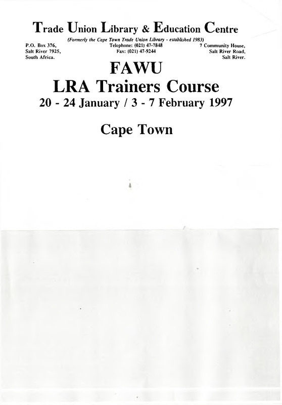 - The item is held at the Cory Library for Humanities Research, Rhodes University, on behalf of the Labour Research Service