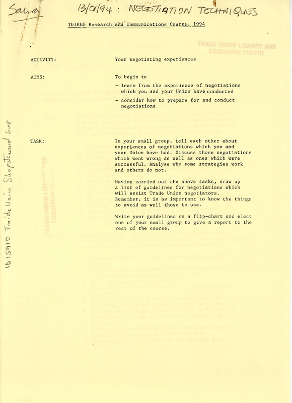 TUIREG Research, and Communications Course, 1994