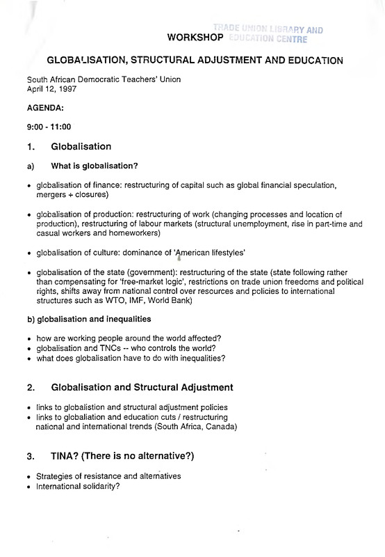 - Globlisation, structural adjustmentand education