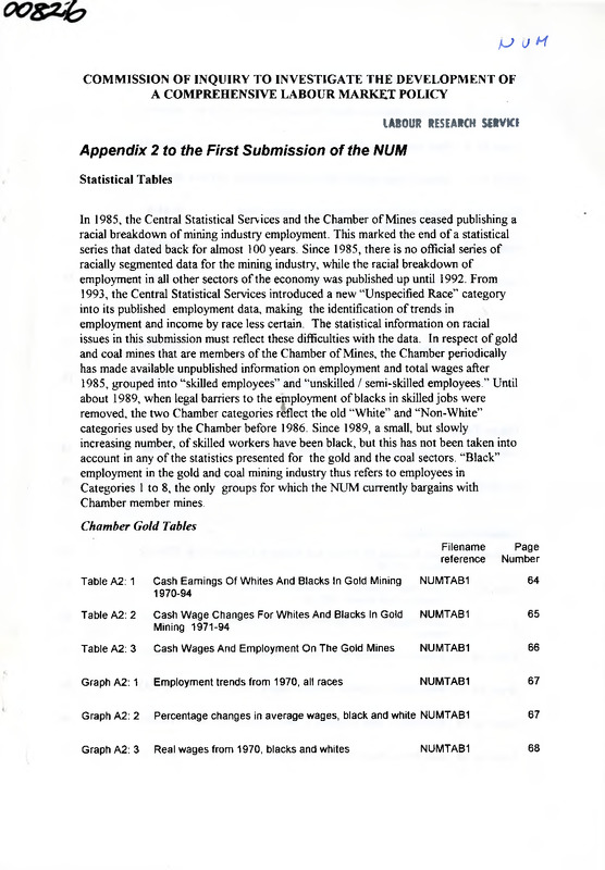 - In 1985, the Central Statistical Services and the Chamber of Mines ceased publishing a racial breakdown of mining industry employment. This marked the end of a statistical series that dated back for almost 100 years. Since 1985, there is no official series of racially segmented data for the mining industry, while the racial breakdown of employment in all other sectors of the economy was published up until 1992. From 1993, the Central Statistical Services introduced a new “Unspecified Race†category into its published employment data, making the identification of trends in employment and income by race less certain. The statistical information on racial issues in this submission must reflect these difficulties with the data. In respect of gold and coal mines that are members of the Chamber of Mines, the Chamber periodically has made available unpublished information on employment and total wages after 1985, grouped into “skilled employees†and “unskilled / semi-skilled employees.†Until about 1989, when legal barriers to the employment of blacks in skilled jobs were removed, the two Chamber categories reflect the old “White†and “Non-White†categories used by the Chamber before 1986. Since 1989, a small, but slowly increasing number, of skilled workers have been black, but this has not been taken into account in any of the statistics presented for the gold and the coal sectors. “Black†employment in the gold and coal mining industry thus refers to employees in Categories 1 to 8, the only groups for which the NUM currently bargains with Chamber member mines.