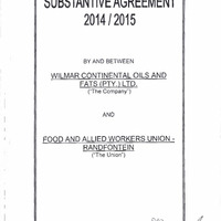 Substantive agreement 2014/2015 by and between Wilmar Continental Oils and Fats (Pty.) Ltd. and Food and Allied Workers Union - Randfontein