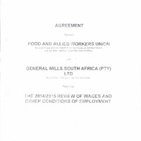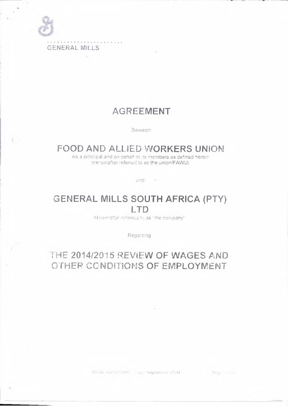- Agreements between Food and Allied Workers Union and General Mills South Africa (Pty) Ltd regarding 2014/2015 review of wages and other conditions of employment