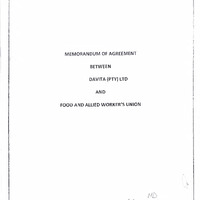 Memorandum of Agreement between Davita (PTY) LTD and Food and Allied Worker's Union