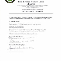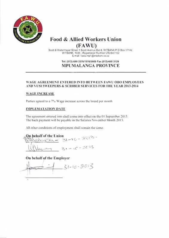 - Wage agreement entered into between FAWU obo Employees and Vusi Sweepers & Scriber Services for the year 2012-2014