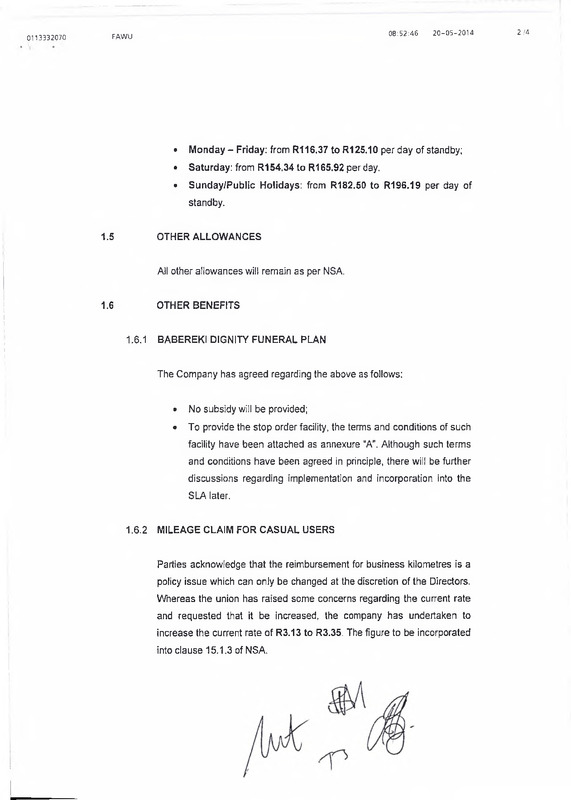 - SAB NSA settlement agreement between Food and Allied Workers Union and South African Breweries (PTY) LTD and South African Breweries Maltings (PTY) LTD.