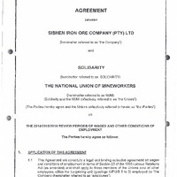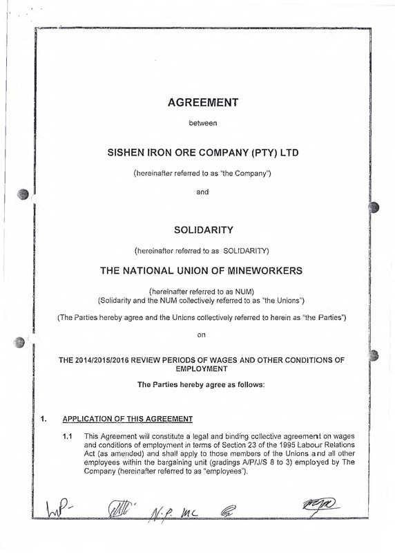 - Agreement between Sishen Iron Ore Company (Pty) Ltd and Solidarity and the National Union of Mineworkers (NUM): the 2014/2015/2106 review periods of wages and other conditions of employment