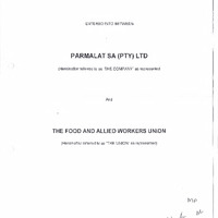 - National substantive agreement entered into between Parmalat SA (PTY) Ltd and the Food and Allied Workers Union.