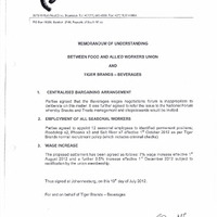 - Memorandum of Understanding between Food and Allied Workers Union and Tiger Brands - Beverages