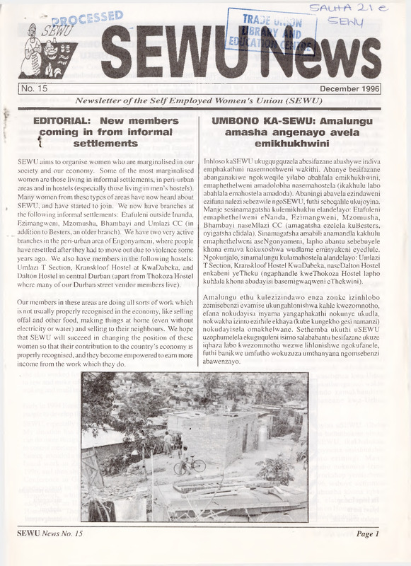 - Newsletter of the Self-Employed Women's Union, No. 15, June 1996