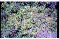 Chrysanthemoides monilifera in full flower at dune edge, many more the same. -