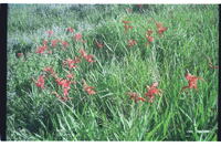 Vlei lilies in splendid flower in the Bantu territory surrounded by short heavily-grazed sheepveld. The vleis are very shallow and only fill after good rains. -