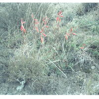 - Good clump of Aloe humilis in dense grassveld. About 15 flowerheads in this picture.
