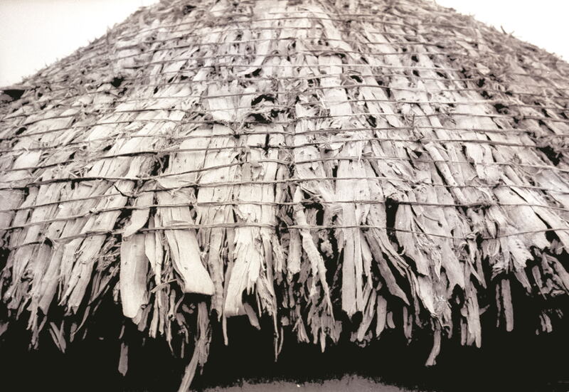 - Close-up of the thatching of a Native laborer's hut. The stems and branches of the Spekboom have been flattened by pulping and then stacked one on top of the other.