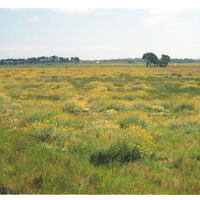 - Massed flowering of Athanasia dentata invading farm pasture-land.